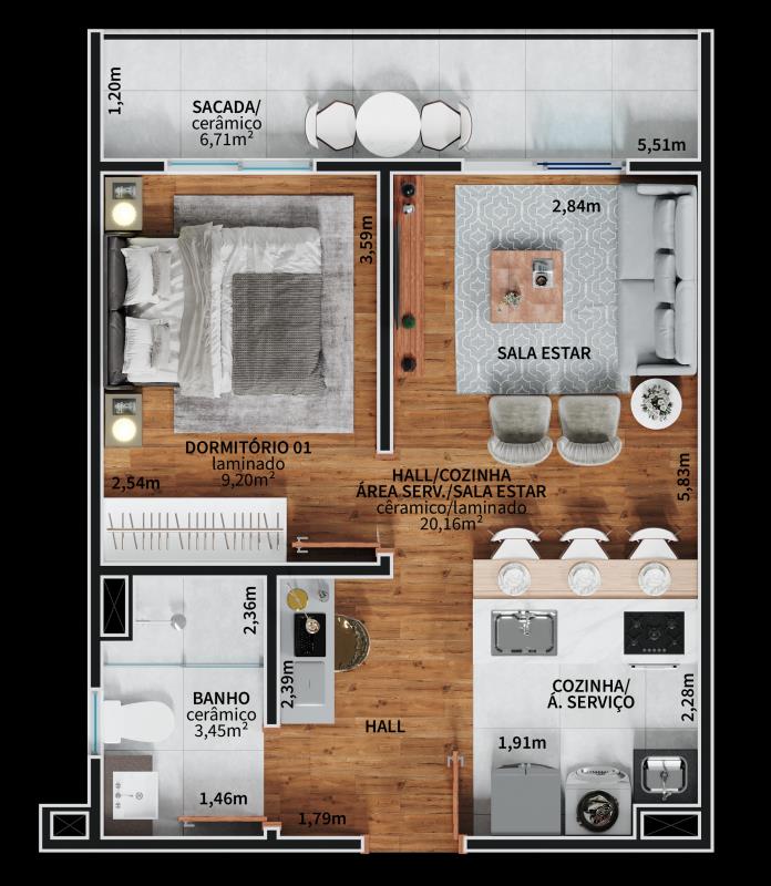 - Sala de estar e jantar integradas